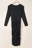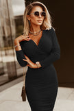 - Turn into a celebrity style instantly with this Long Sleeves Wrap V Neck Ruched Sheath Midi Dress