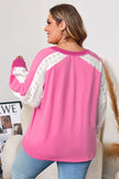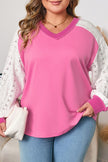 - The lace striped patchwork design gives this plus top an unique silhouette.