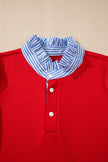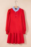 - Bold contrast striped collar adds a preppy, eye-catching touch to this playful mini dress.