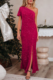 - Dramatic one shoulder design creates elegant asymmetry with red carpet appeal.